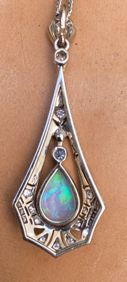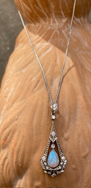 Jugenstilanhänger mit Opal und Diamanten